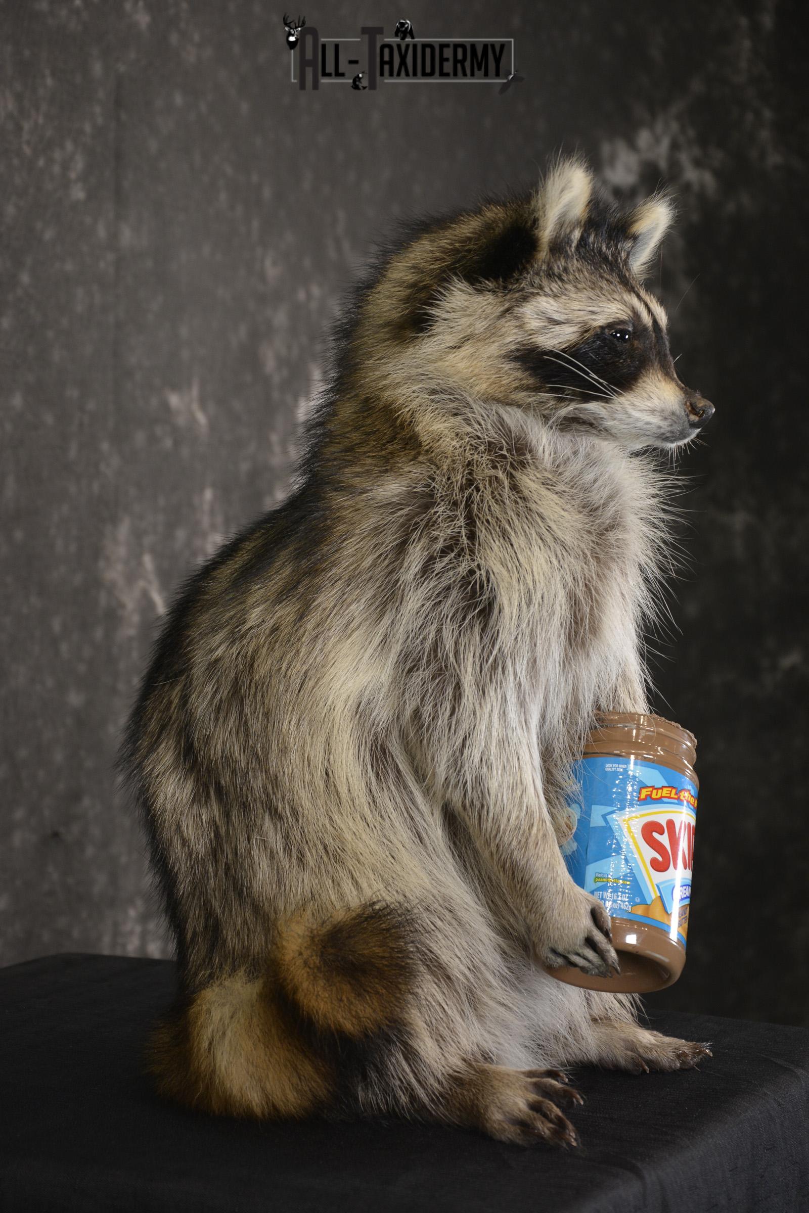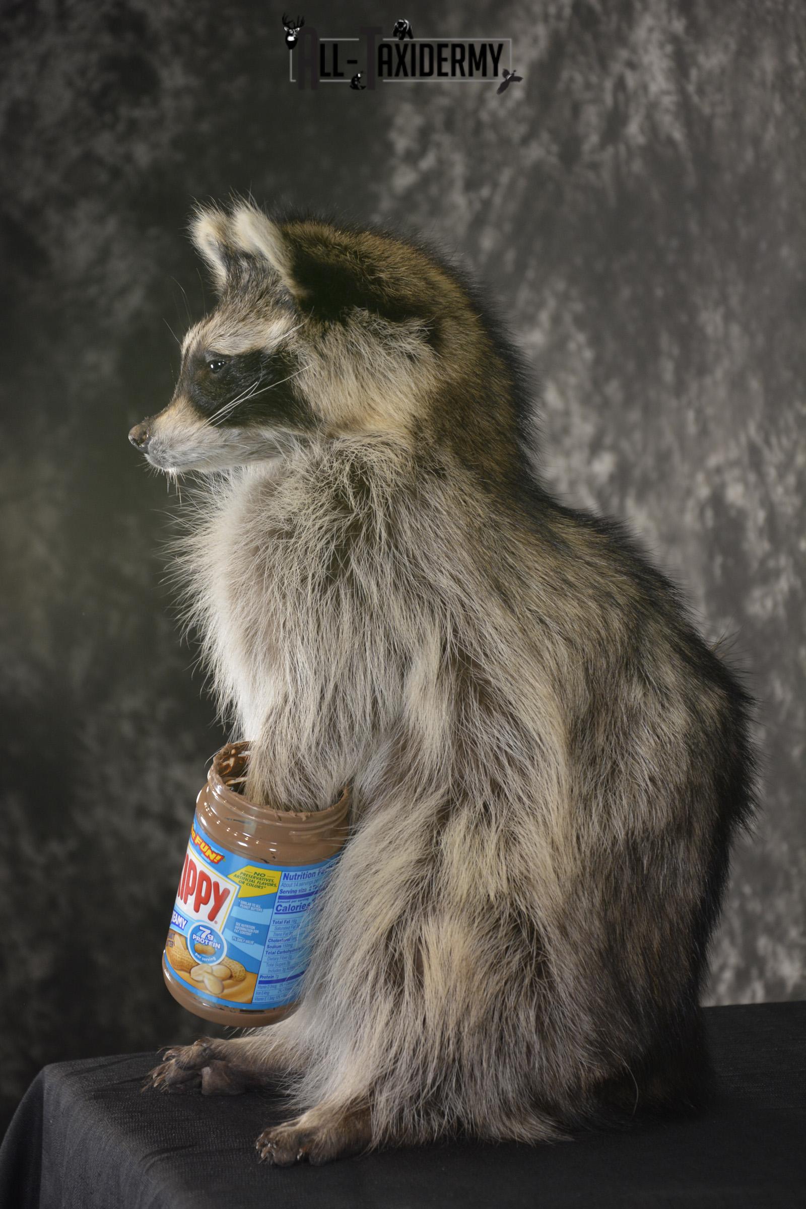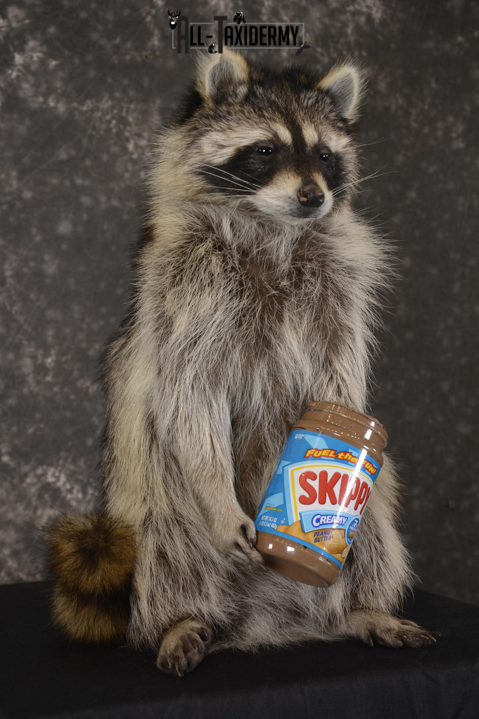 Raccoon with peanut butter jar novelty taxidermy mount for sale SKU 1873